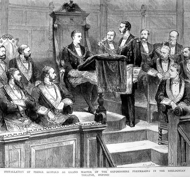Le prince Léopold était un maçon accompli. C’était le prince de Galles, futur roi Edouard VII, qui avait proposé, en 1874, le Prince George Duncan Albert Léopold, duc d’Albany pour l’initiation à l’Apollo University Lodge n ° 357, alors qu’il était encore étudiant à Christ Church. En 1875, il a été nommé Vénérable Maître de la Loge et Grand Maître Provincial pour Oxfordshire.